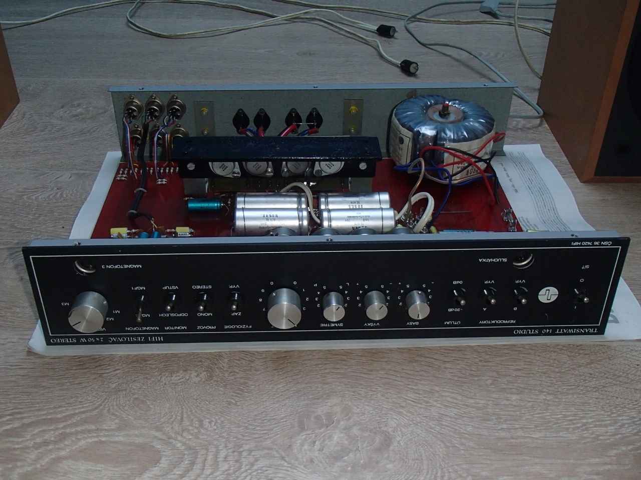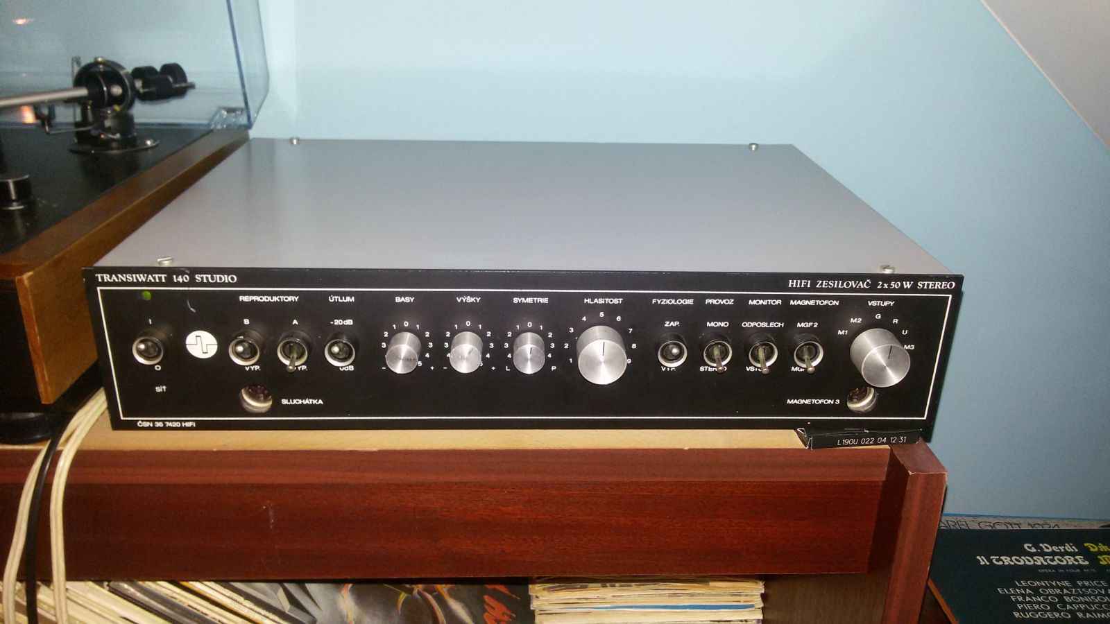Transiwatt 140S je zesilovač, který byl určen spíše pro studiové účely. Obsahuje mnoho ovladacích prvků. Můžeme zvlášť zapínat přední a zadní reprobedny, měnit fyziologickou, nebo lineární regulaci hlasitosti. Samozřejmostí jsou i korekce, přepínač mono/stereo a přepínač vstupních signálů. Jeden ze vstupů a to konkrétně vstup pro gramofon s magnetodynamickou přenoskou obsahuje předzesilovač s křivkou RIAA. Výstupní výkon je 2x50W do 4R zátěže. Zesilovač jsem získal z Aukra. Bohužel pravý kanál nefungoval. Nadměrně hřály dva výkonové odpory v budiči koncových tranzistorů. V tomto případě je většinou proražený KC507, nebo KU611, které jsou v darlingtonově zapojení. Je to poměrně častá závada u těchto zesilovačů. V mém případě byl proražený KC507, ale když už jsem měl zesilovač rozebrany, vyměnil jsem i KU611 v obou kanálech. Následovala výměna elektrolytických kondenzátorů u výkonových odporů, které jsem už zmínil. Po těchto opravách již zesilovač byl plně funkční. Zesilovač používám s reprobednami Tesla ARS944. Celá sestava hraje velmi dobře.